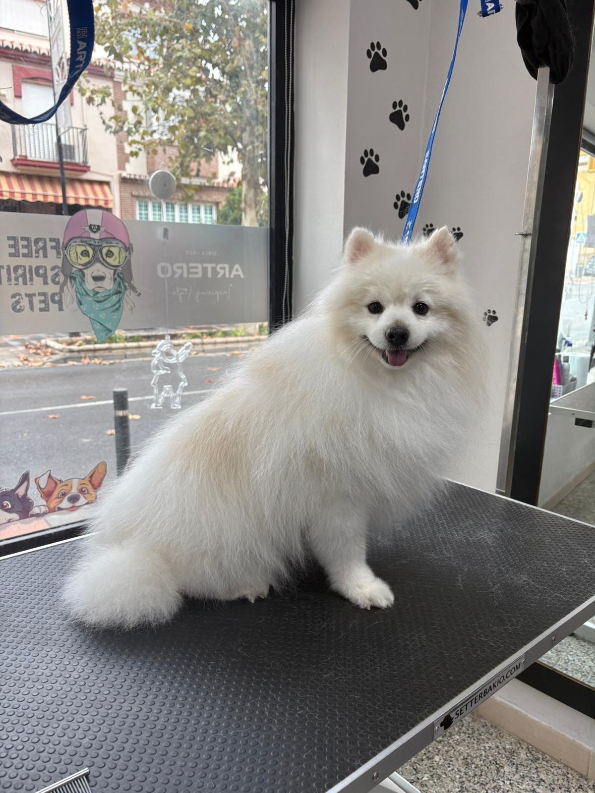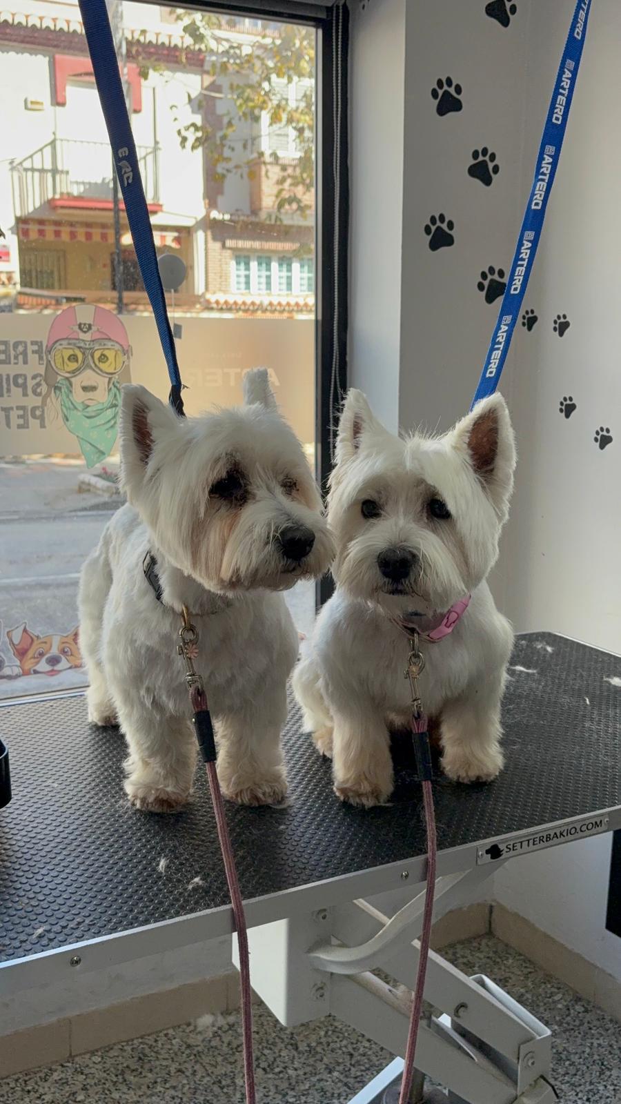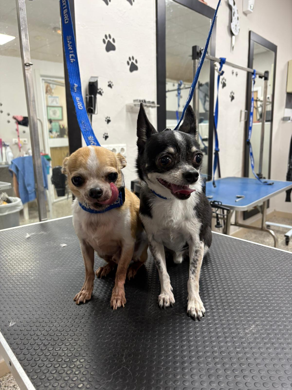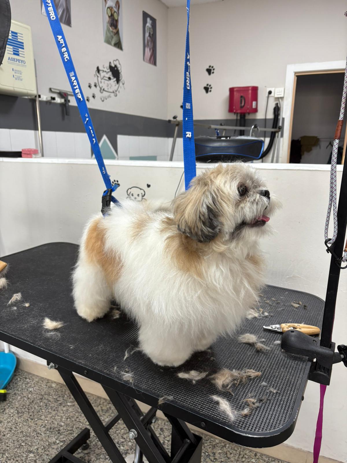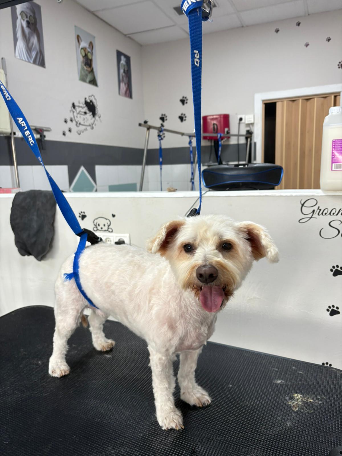 Imágenes reales de nuestro trabajo en peluquería para mascotas y de la formación práctica de nuestros alumnos.